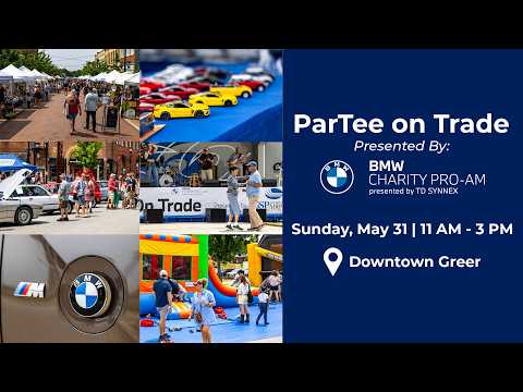 ParTee on Trade is back for another year of family fun in downtown Greer! Bring the whole family on Sunday, May 31 for live music, local vendors, food trucks, and activities as we kick off the 2026 BMW Charity Pro-Am presented by TD SYNNEX . The tournament returns June 1 - 7.
